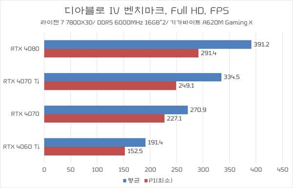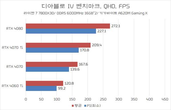 지금까지 지포스 RTX 4080부터 RTX 4060 Ti 까지 그래픽 카드 4종의 디아블로 IV성능을 측정해 봤다.