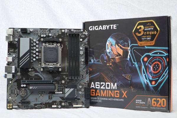 한편, 테스트 메인보드는 기가바이트 A620M Gaming X 제이씨현을 선택했다. AMD는 A620 칩셋 메인보드에 TDP 65W CPU 사용을 권장하지만, 전원부 설계에 따라 더 높은 TDP 모델도 사용할 수 있다고 설명하고 있다.