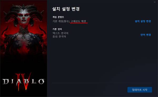 블리자드는 디아블로 IV에 대해 라이브 서비스를 표방하는 만큼 향후 확장팩이나 시즌 컨텐츠 업데이트에 따라 기본 용량이 늘어날 수 있으니, 향후 설치 공간이 부족해진다면 고해상도 에셋을 삭제해 용량을 확보할 수 있다.