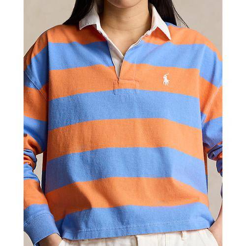 스트라이프 크롭 저지 럭비 셔츠