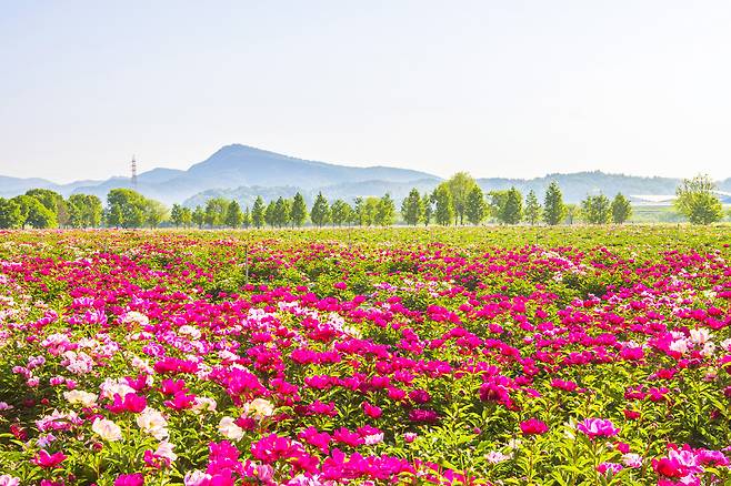약 6천 평 규모의 넓은 작약밭이 황강을 따라 펼쳐진 이곳은, 해마다 5월이면 전국 각지에서 관광객들이 찾는 '전국 대표 작약 명소 1위’로 손꼽힌다.