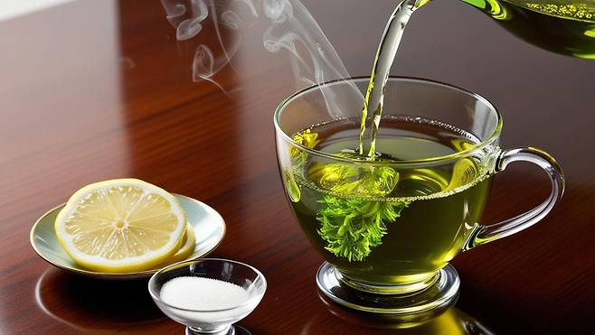 ● 레시피: 녹차 우린 물 500ml + 설탕 2티스푼 + 레몬 1/4조각