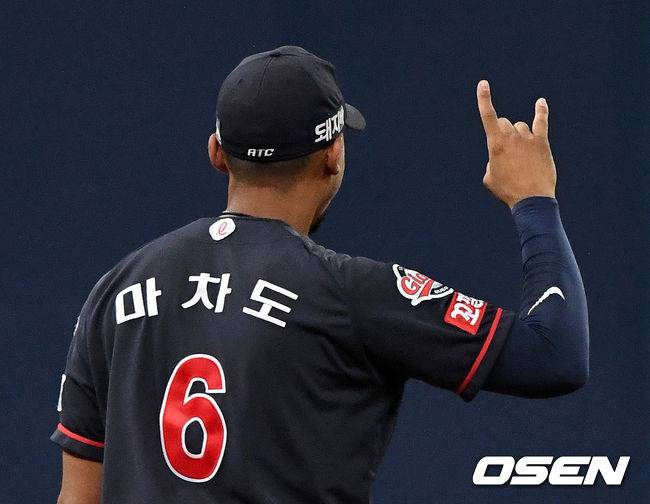 '롯데 자이언츠 출신' 딕슨 마차도는 6회 초 대수비로 투입돼 6회 말 적시타를 기록했다. 페레즈의 인정 2루타와 저메인 팔라시오스의 볼넷으로 만든 2사 1, 2루 찬스서 마차도는 좌전안타로 11-0을 만드는 타점을 올렸다.