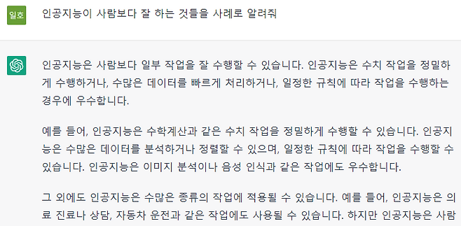 인공지능이 사람보다 잘 할 수 있는 건 뭐가 있을까요? 이 지점에서 챗GPT의 실력을 잠깐 보여드릴게요.