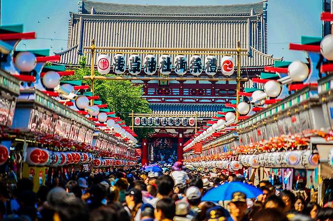 이 축제는 유카타와 다양한 전통 지역 간식과 같은 전형적인 일본 기념품을 파는 수많은 가판대를 볼 수 있고 이는 센소지 사원으로까지 이어집니다. 200m 길이의 쇼핑가인 나카미세에서 즐거운 시간을 보낼 수 있습니다.