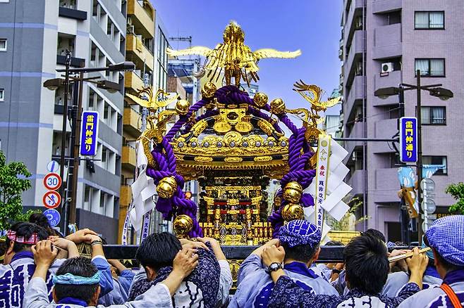 산자 축제는 많은 종류의 행사가 풍부하고, 첫날부터, 현지인들은 아름다운 수레의 일종인 세 개의 주요 미코시와 함께 아사쿠사 마을을 행진합니다. 붐비는 거리를 따라 있는 아름다운 수제 가마(미코시)는 3일 동안 꼭 봐야 할 광경입니다.