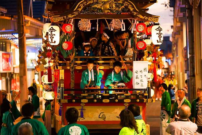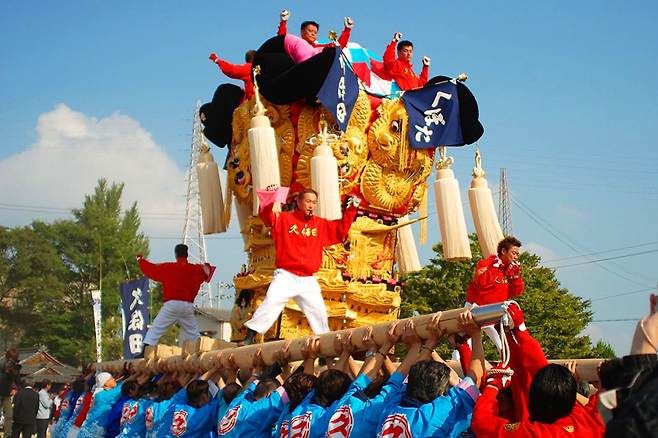 이 축제는 300년 전으로 거슬러 올라가며, 몇몇 오리지널 수레는 오늘날까지 보존되어 있습니다. 축제용 수레는 축제 기간 동안 퍼레이드를 하고 마지막 날에 지역 아이들의 가부키 공연을 위한 무대로 사용됩니다.