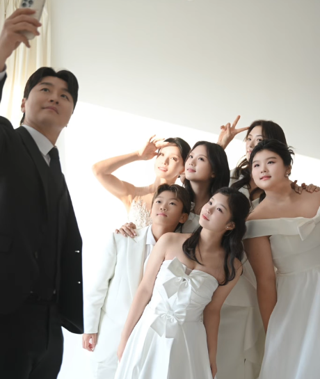 이번 화보의 백미는 단연 오남매(재시, 재아, 설아, 수아, 시안)의 완전체 모습이다. 과거 예능 프로그램에서 '대박이'라는 국민 애칭으로 사랑받았던 막내 시안 군은 어느덧 훌쩍 자라 정장을 완벽히 소화하는 '꼬마 신사'로 거듭났다.