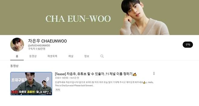 얼굴 천재라 불리며 많은 팬의 인기를 끌고 있는 차은우가 갑자기 개인 유튜브 채널을 개설한다고 하자 누리꾼들은 유튜브 생태계 교란종의 등장이라며 놀라움을 감추지 못했다. 그러면서도 차은우의 구독자 수가 어떻게 변할지 주목하고 있다.