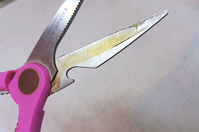 바로 녹 제거하는 데 사용하시면 좋은데요. 가위에 지저분한 녹이 슬었어요.