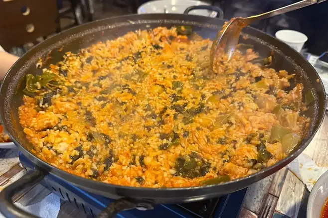 곱도리탕을 먹고 나면 절대 그냥 나올 수 없어요. 마지막은 당연히 볶음밥입니다. 남은 국물에 김가루와 밥을 넣고 철판에서 바짝 볶아주는 볶음밥은, 매콤한 국물의 진한 풍미를 그대로 품고 있어 입 안을 꽉 채우는 감동을 주었습니다.