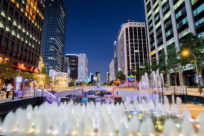 청계천의 시작점, 청계광장은 서울 도심 한복판에서 물길 따라 낭만을 찾을 수 있는 서울광장입니다. 분수와 폭포, 보자기 모양의 바닥 장식까지, 볼거리가 꽤 알차죠. 특히 밤이면 형형색색 조명과 물줄기가 어우러져 반짝이는 야경이 펼쳐져 산책하는 재미도 배가 됩니다.