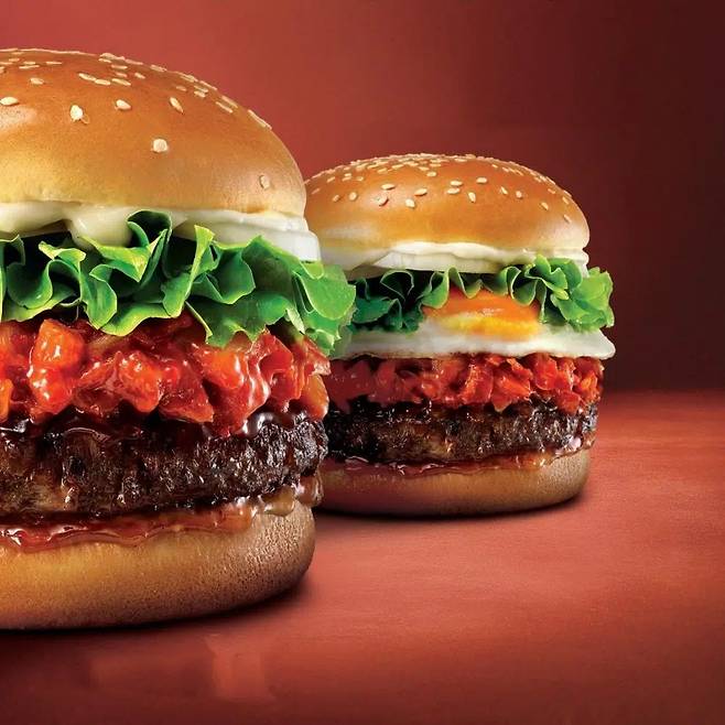 롯데리아가 선보이는 K-버거는 바로 김치버거다. 김치를 활용한 2종의 버거를 공개했다. 국내산 김치와 깍두기를 볶아 넣은 ‘김치불고기버거’, 반숙 계란프라이를 더한 ‘에그김치불고기버거’다. 느끼한 맛을 김치가 확 잡아주면서 킥이 된다. 식감을 살리기 위해 김치만 사용하지 않고 깍두기를 넣었다고. 가격은 6,500원.