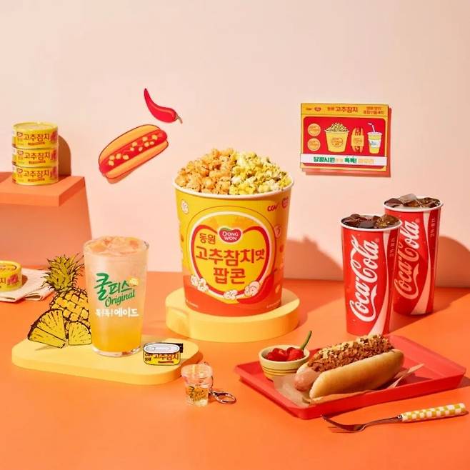 밥도둑 고추참치가 팝콘이 됐다니. 동원 고추참치가 CGV 팝콘으로 재탄생했다. 매콤달달한 고추참치 시즈닝을 뿌려 완성했다고. 팝콘 외에도 고추참치맛 핫도그도 출시했다니 맛보면 좋겠다. CGV 용산, 왕십리, 영등포 지점에서는 고추참치캔도 증정한다고.