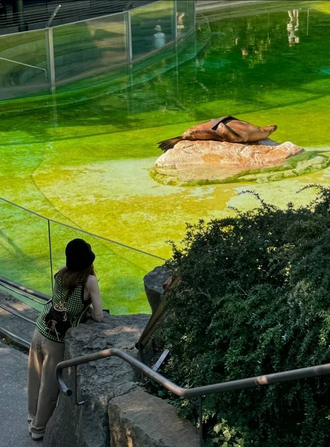 그룹 소녀시대 태연이 독일 베를린에서 블록코어 여행룩으로 늘씬한 자태를 뽐냈다.