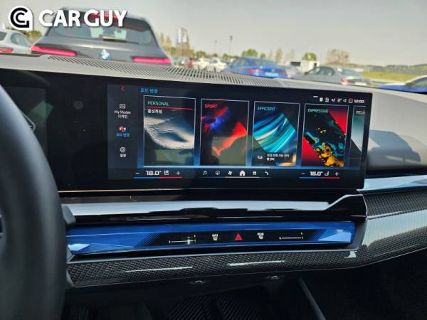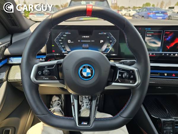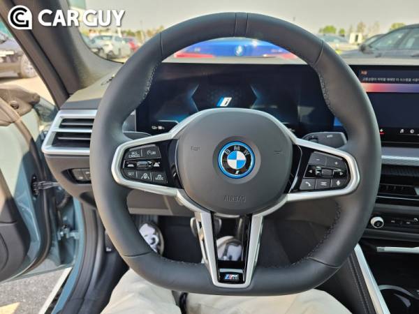 신형 i4는 BMW답게 두툼하고 그립감 좋은 스티어링휠이 적용되어 있다. 스포티한 디자인의 D컷 스타일이다. 멋을 위한 것도 있지만 스티어링휠을 몸에 가깝게 밀착했을 때도 다리공간 확보가 용이해 스포티한 차량에 잘 어울린다.