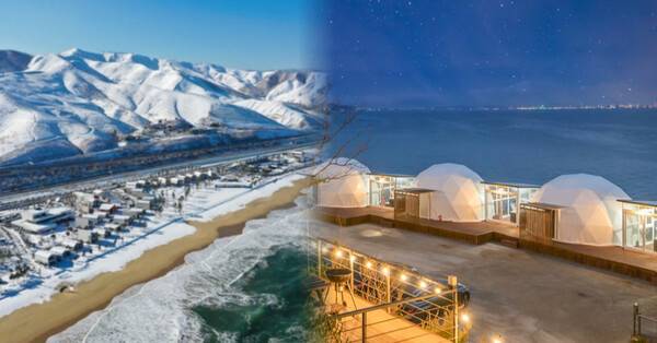또 바다가 보이는 곳에 설치된 카라반과 피크닉 테이블, 코티지가 울창한 숲과 하얀 백사장, 코발트블루의 바다와 어우러져 유럽 캠핑존 같은 느낌을 줘 겨울이면 많은 연인들이 찾아오는 곳이라고 합니다.