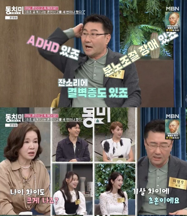 지난 19일 방송된 MBN '속풀이쇼 동치미' 방송에서는 배우 최정우가 출연했습니다. 이들은 '여보, 혼인신고 꼭 해야 돼?'를 주제로 이야기를 나눴습니다. 최정우는 “외국 배우 같으면 (혼인 신고를) 8번, 10번이라고 해도 자랑스러울 만한 일인지 모르겠지만 난 한국 배우다”라며 “이건 나를 좋게 봤던 사람도 똑같이 (편견 가진 시선으로) 날 바라볼 것 같아서 이런 자리에서 최초공개(한다)”고 입을 열었습니다.