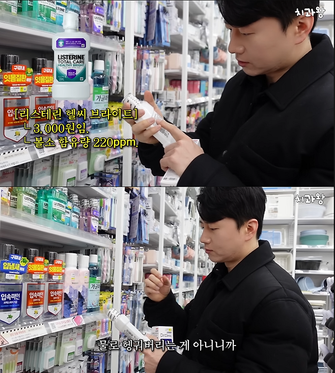 그는 영상에서 가글 역시 치약처럼 불소가 함유된 제품을 고르라고 조언했다. 그는 불소가 들어간 리스테린 제품을 고르며, 가글을 사용 후 물로 입을 헹구는 것이 아니라고 바로잡았다.