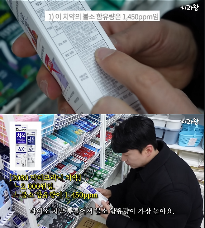 영상에서 공개한 바에 따르면 1450ppm 이상 함유된 치약이 충치 예방에 유의미한 효과가 있다는 연구 결과가 있다.