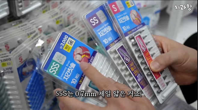 치간칫솔은 sss, ss, s 세가지 규격으로 나오는데 이는 등급이 아닌 치아 간격 사이즈를 말한다. 간격이 좁으면 sss, 간격이 넓으면 s 사이즈를 선택하면 된다고 조언했다.