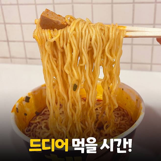 스프와 함께 저어줍니다. 물이 뜨거워서 그런지 잘 섞이더라고요. 체다치즈를 넣고 함께 조리하면 더욱 고소한 라면을 맛볼 수 있다는 조리 팁이 있어요! 하지만 저는 오리지널로 먹어볼게요!