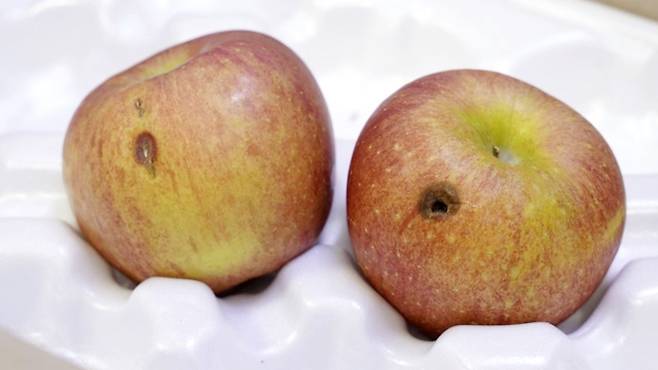 이런 것을 함께 보관하면 오히려 다른 사과까지 망가질 수 있으니 따로 두어 먼저 먹거나 버리는 것이 좋답니다.