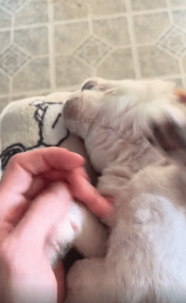 두 앞발은 허우적이며 손을 밀어내고, 뒷발은 어설프게 퍼덕이며 반격을 시도합니다. 배를 중심으로 몸 전체를 좌우로 뒤척이기도 하고, 가끔은 소리 없는 ‘앗!’ 하는 표정으로 항의하는 듯한 인상을 주기도 합니다. 하지만 이 모든 움직임은 진지하다기보다 너무 귀엽고 엉성해서, 주인의 웃음이 먼저 터져 나올 정도입니다.