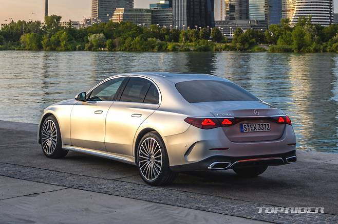 신형 E클래스는 전장 4948mm, 휠베이스 2961mm 등 이전 세대보다 길어진 차체와 휠베이스로 안정적인 후륜구동 프로포션이 구현됐다. 신형 E클래스 외관은 3박스 세단 형태로 클래식한 라인과 모던한 디자인이 만나 벤츠의 전통과 현대를 조화롭게 결합한 것이 특징이다.