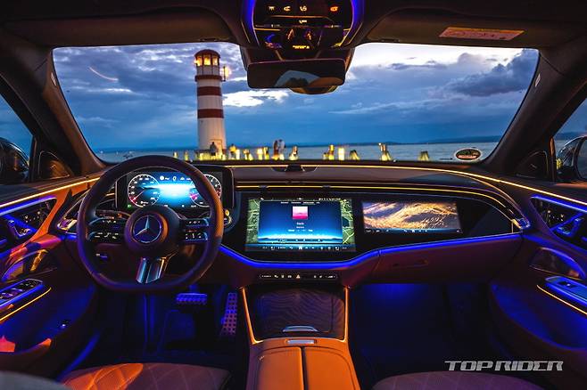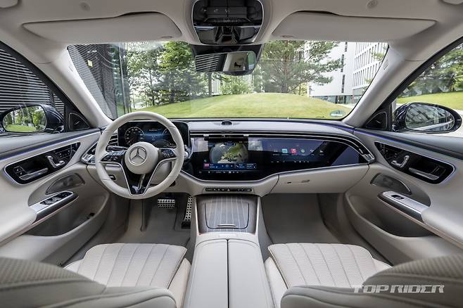 디지털 계기판과 센터 디스플레이, 조수석 디스플레이로 구성된 MBUX 슈퍼스크린은 E300 4MATIC 익스클루시브 초도 물량과 E300 4MATIC AMG 라인, E450에 기본 탑재됐다. E450은 디지털 벤트 컨트롤, 에어 서스펜션, 뒷바퀴 조향 최대 4.5도 후륜 조향이 기본이다.