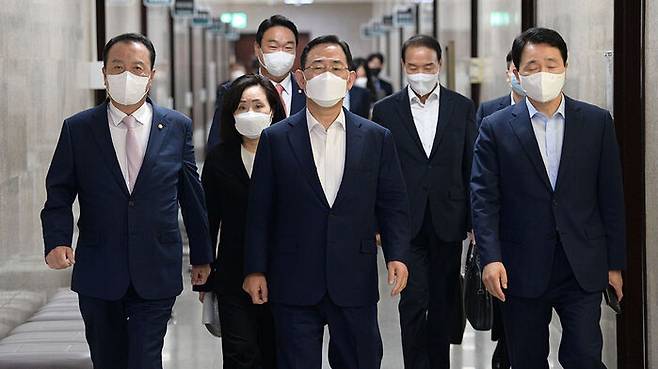 주 위원장은 김진표 국회의장이 전날 추진하겠다고 밝힌 '여야중진협의체'에 대해선 "독일에서는 제도화가 돼 있는 걸로 안다. 정치가 되살아날 수 있는 좋은 기회이고 여야가 극한대립을 할 때 조정, 완충할 장치인데 제 경험에 늘 야당이 소극적이었다"며 "저희로서는 여야 중진협의체 가동을 간절히 바라고 있고, 국회의장 생각을 한번 들어볼 시간을 가질 것"이라고 말했습니다.