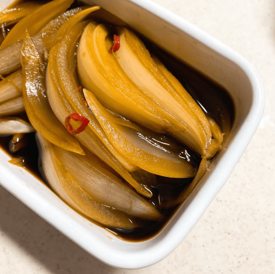 완성된 양파절임은 단독 반찬으로도 훌륭하지만, 고기구이와 곁들이면 느끼함을 잡아줘 환상의 조합이 된다. 또한 햄버거나 샌드위치에 넣으면 풍미가 살아나고, 밥과 함께 먹으면 단짠조합 덕분에 밥도둑 역할까지 한다. 시판 절임 제품보다 훨씬 담백하고 깔끔해서 식단 조절하는 사람들에게도 부담이 없다.