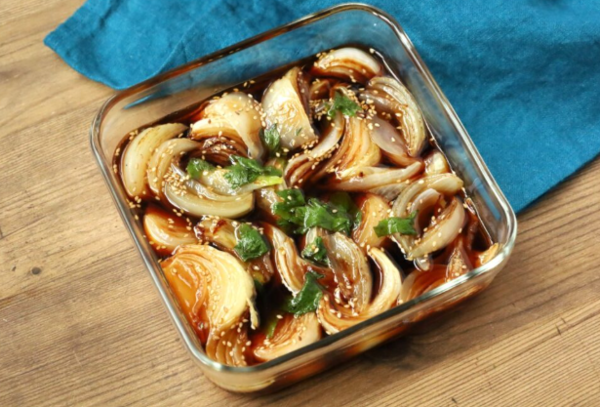 양파를 팬에서 바로 꺼낸 뒤 너무 식기 전에 용기에 담고, 미리 준비한 양념장을 부어야 한다. 따뜻한 상태의 양파는 조직이 부드럽고 열려 있어서 양념이 훨씬 빠르게 스며들 수 있기 때문이다. 식은 양파에 양념장을 붓게 되면 겉면에만 맛이 배고, 속까지 간이 들지 않아 밋밋할 수 있다.