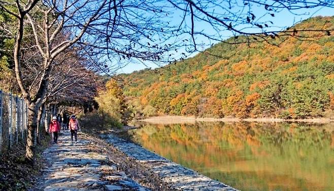 회동수원지를 따라 조성된 땅뫼산 황토숲길은 이곳의 대표적인 산책 코스다.