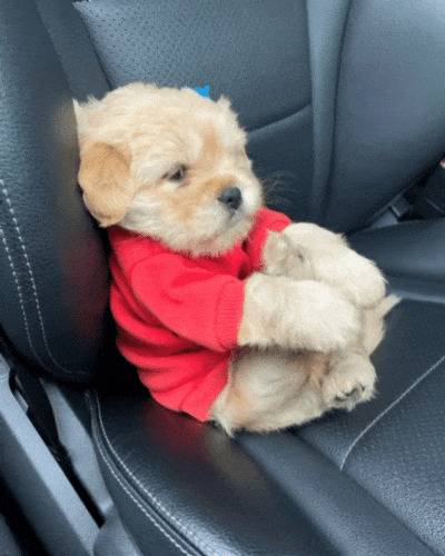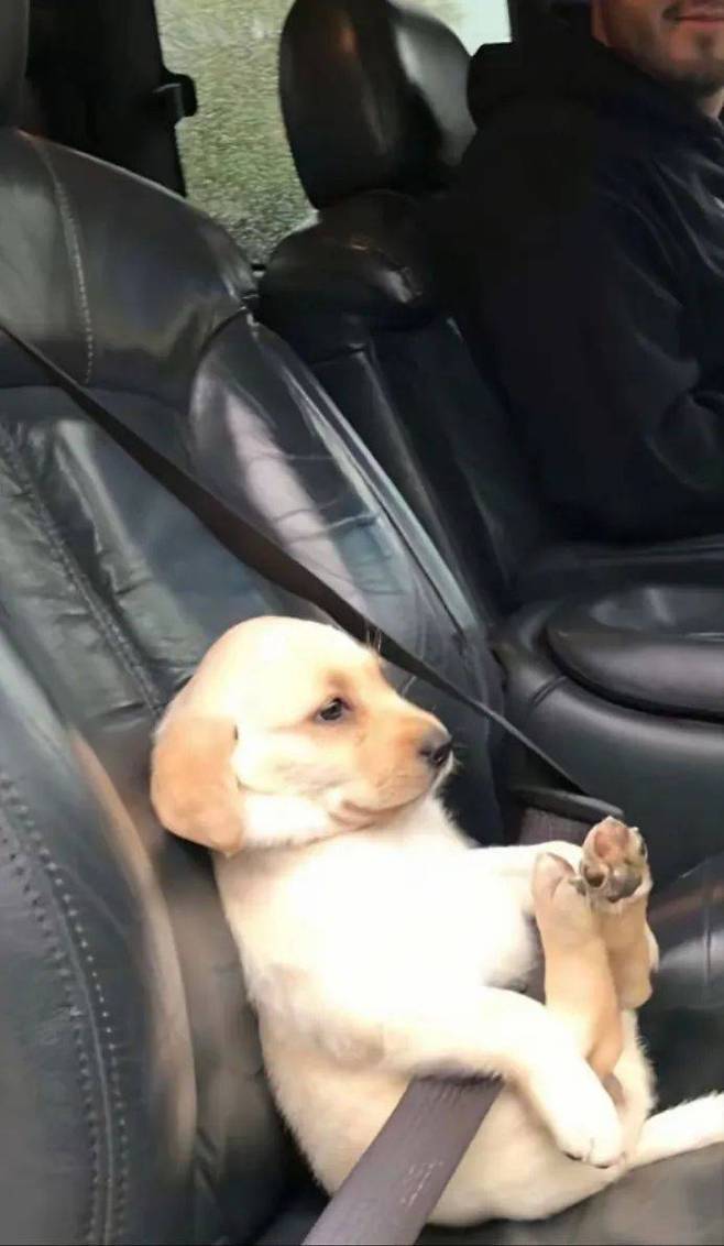 처음으로 주인의 차를 타는 강아지는 발로 좌석을 더럽히지 않으려 애쓰는 모습을 보여주었습니다!