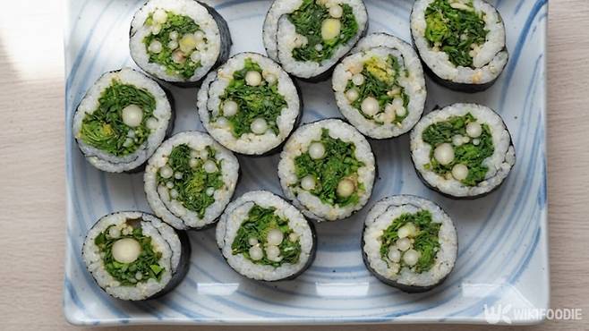 냉이 김밥은 데치는 시간과 물기 제거가 완성도를 좌우한다. 밥을 두껍게 펴는지 얇게 펴는지도 맛에 영향을 준다.
