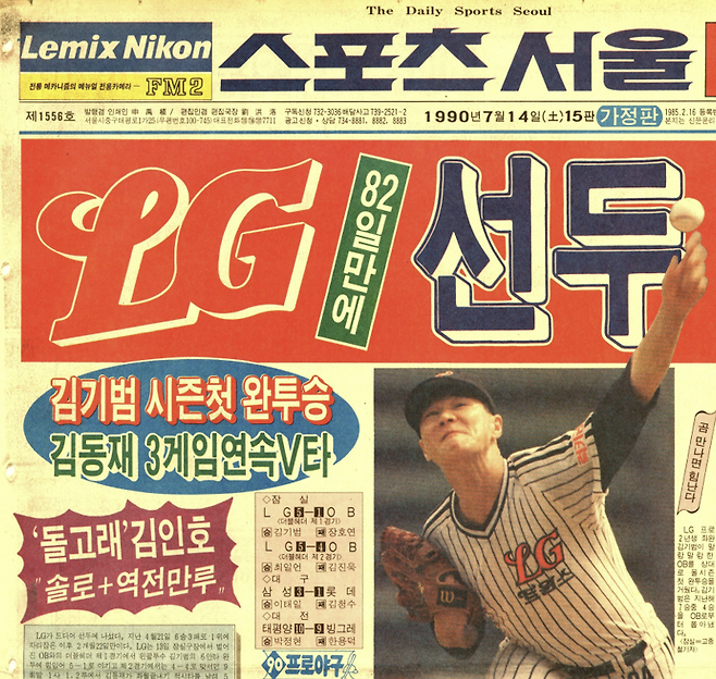 김용수는 7월 19일 광주 해태전에서 9이닝 동안 탈삼진 10개를 잡으면서 4안타 1실점으로 역투해 시즌 5승째를 낚았다. 개인적으로 프로 데뷔 후 2번째 완투승. 1988년 7월 23일 롯데전 이후 2년여 만에 기록한 것이었다. 루키 김동수는 3-1로 앞선 5회초 만루홈런을 날리면서 승부에 쐐기를 박았다. 시즌 10호 홈런이자 프로 데뷔 첫 만루홈런을 기록하면서 LG는 투타에서 신바람을 냈다.