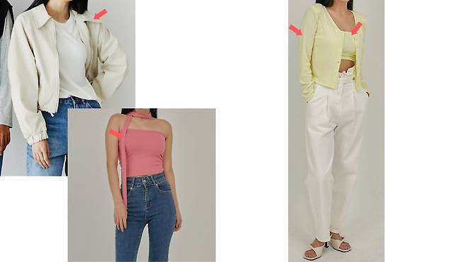 위와 같이 선택하여 스타일링 할 수 있으며 색상은 입은 옷 다 합쳐서 3~4가지를 넘지 않는 것이 좋다.