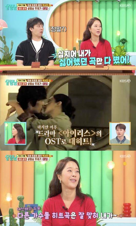 '살림남' 주제곡 만드는 과정을 보여주던 박서진은 백지영에게 히트곡을 예감한 적이 있냐고 물었고, 백지영은 “나는 그 촉이 진짜 안 좋다”라고 답했다.