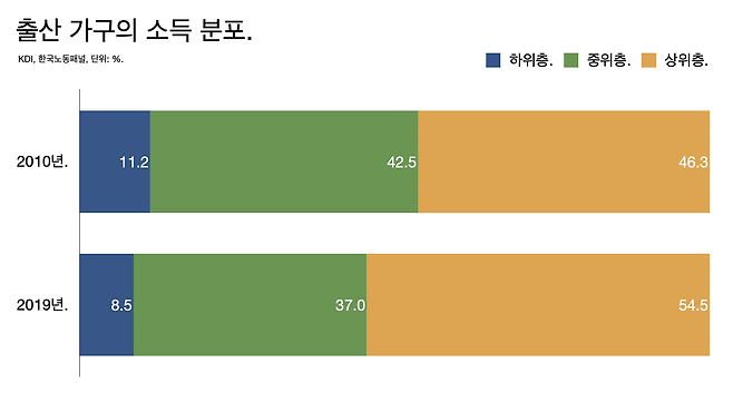 - 2019년 기준으로 소득 하위층은 8.5%, 중위층은 37%, 상위층은 54.5%다. 중위소득 75% 이하(3174만 원)를 저소득층, 200% 이상(6348만 원)을 고소득층으로 분류했다.