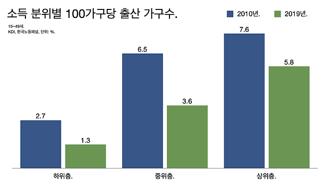 저소득 저학력일수록 출산율 낮다.