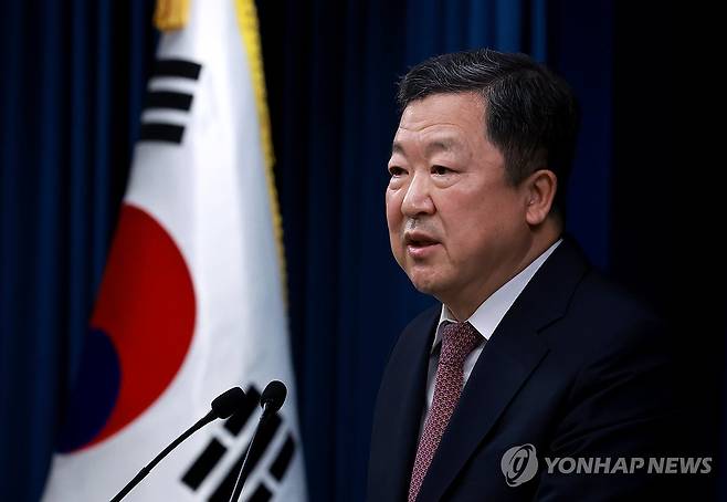 (서울=연합뉴스) 홍해인 기자 = 박춘섭 대통령실 경제수석이 12일 서울 용산 대통령실 청사에서 윤석열 대통령의 아시아태평양경제협력체(APEC), 주요 20개국(G20) 정상회의 참석 브리핑을 하고 있다. 2024.11.12
