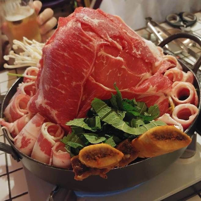 3종 소고기가 들어간 산더미 물갈비를 맛볼 수 있는 부산 '부산양옥'. 술 먹으러 왔다가 밥 먹고 나가는 맛집으로 불리는 이 집의 물갈비는 비주얼부터 심상치 않다. 푸짐하게 들어있는 콩나물을 둘러싸고 돌돌 말린 차돌박이와 등심, 큰 갈빗대 2대가 들어가 있어 마치 탑처럼 보인다. 콩나물이 익기 시작하면 국물을 고기에 얹으면서 익혀 먹으면 되는데 고소한 소고기의 기름과 콩나물의 시원함이 어우러져 진국을 만들어 낸다. 매콤한 국물은 술안주로도 좋지만 밥과 함께 먹어도 좋다고. 맵기도 조절이 가능하다니 술과 밥을 함께 즐기고 싶다면 이 집을 추천한다.