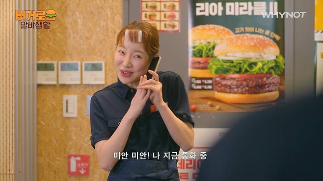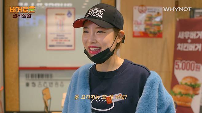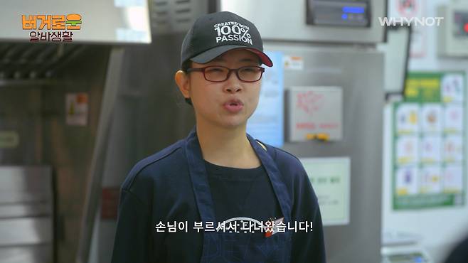 음식점 알바하러 와선 털옷 입고 있고