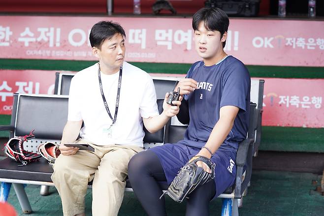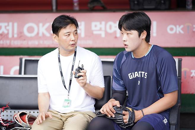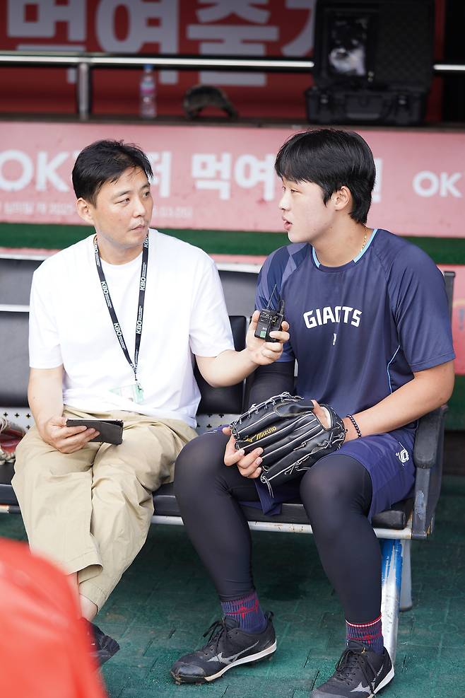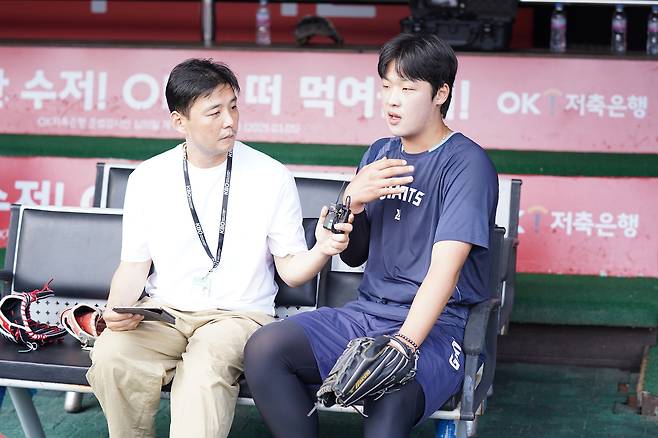 “시즌 초반 등판 경기는 보근이 형이 마스크를 썼고, 최근에는 강남이 형이 포수였어요. 보근이 형은 제가 던지는 구종 중에 ‘체인지업이 있다’는 걸 타자들에게 보여줘야 한다는 생각을 하는 것 같았고요. 강남이 형은 제 공 중에서 구위가 좋은 공을 적극적으로 활용한다는 느낌을 받았습니다.”