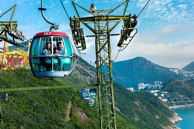 홍콩 오션파크의 케이블카에 오르면, 홍콩의 아름다운 남부 해안선과 녹음이 우거진 산, 그리고 브릭 힐의 상징인 해마 로고까지 한눈에 담을 수 있다.