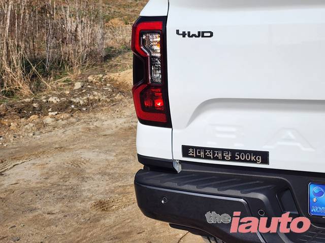 사이드는 휠하우스 부분을 다른 색상으로 마련했으며, 직선과 곡선의 라운드로 구성되면서 라운드를 더하고 있다. 여기에 와일드트랙 로고가 좌측에 마련됐고, 18인치 휠과 사이드스텝이 마련되면서 오프로드 스타일을 완성하고 있다. 리어는 테일게이트에 레트로 감성이 물씬 풍기는 스타일을 갖추었고, 센터에 램프와 최대적재량이 500kg이라는 것을 알게 만든다.