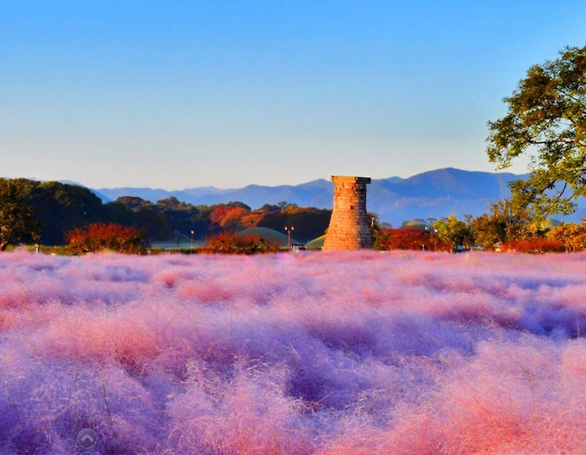 가을의 첨성대는 단순한 유적지가 아닙니다. 10월에는 첨성대 주변에 핑크뮬리가 만개해 더욱 화려한 볼거리를 제공합니다. 핑크뮬리 꽃밭과 고대 유물이 어우러지는 풍경은 이곳을 방문하는 사람들에게 특별한 감동을 선사합니다.
