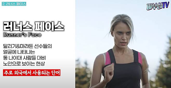 ‘러너스 페이스(Runner’s Face)’란, 달리기를 자주 하는 사람들에게서 보이는 얼굴형이나 피부를 가리키는 말이다. 우리나라에서 그리 보편적으로 사용되지는 않는다. 단지 ‘나이에 비해 노안으로 보인다’라는 본질만 캐치하면 된다.