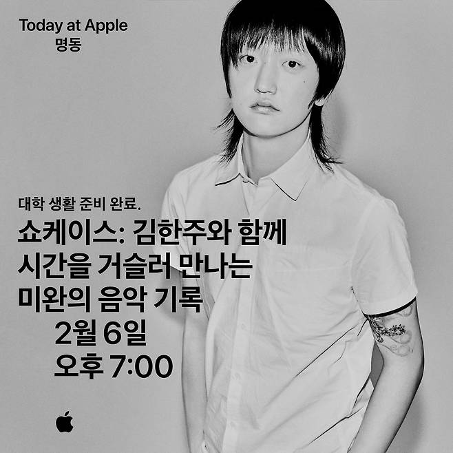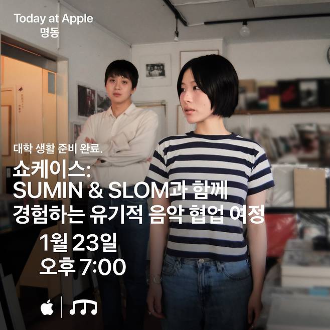 이 외에도 Apple 명동에서는 아티스트 수민(SUMIN) & 슬롬(Slom), 실리카겔의 김한주가 진행하는 Today at Apple 세션을 마련합니다.영감을 주는 아티스트에게 직접 창작 인사이트를 얻고 디지털 학습 비법도 배우며, 스마트한 신학기를 준비할 수 있습니다.